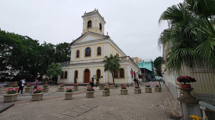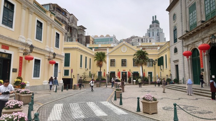 | マカオ半島のセナド広場 マカオを代表する広場で、祝典や催事の会場にも使われる 美しく波を打つモザイクの石段は、1993年にポルトガルの敷石職人によるものということです |