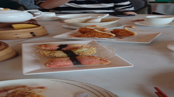 | 香港島からMTRという地下鉄に乗って対岸九龍半島にあるレストランでブランチに飲茶を頂きました この日は嘗て息子の結婚式の折に通訳としてお世話になった香港の方と一緒でした (この方は偶然にも小生が勤務した会社の現地職員で活躍してます) 飲茶とあって残念ですが酒を飲ましてもらえませんでした |