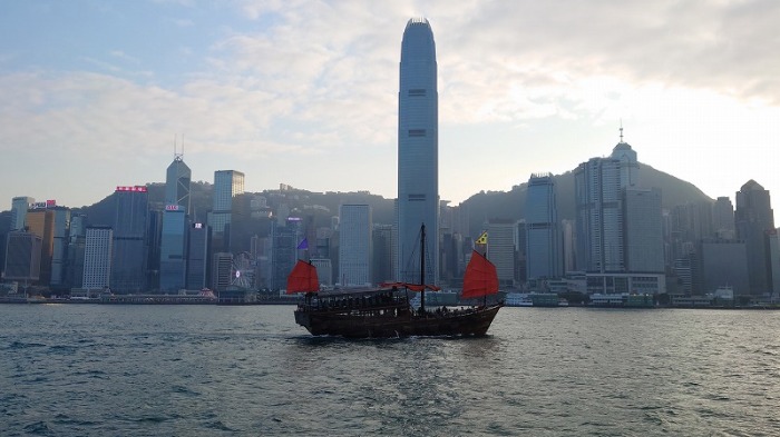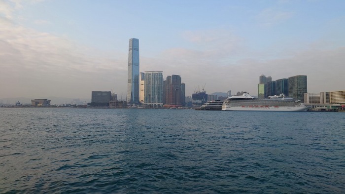 | 高層ビルが立ち並ぶ香港島 | ![]() |