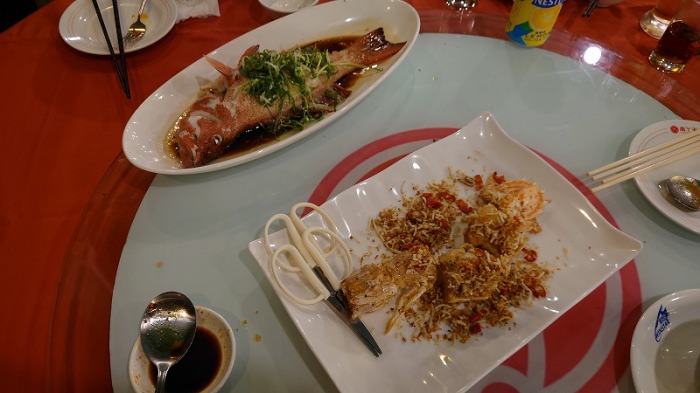 夕食に頂いた肴の煮つけほか 手前の料理は忘れました 好きな海鮮を選べば調理してくれますよ |