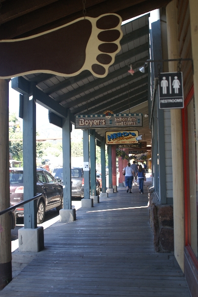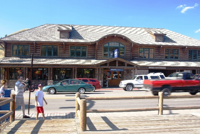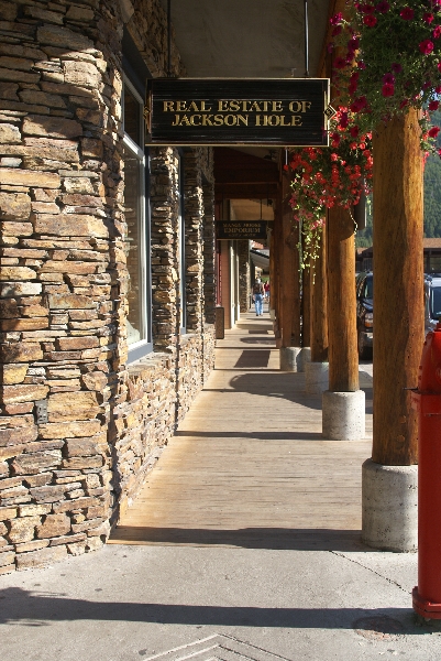 | 冬期、ジャクソンはスキーリゾートになっており、雪対策でしょうか、どこかで見たような建物の造りです。 (新潟の豪雪地帯に似たような建物の庇です) |