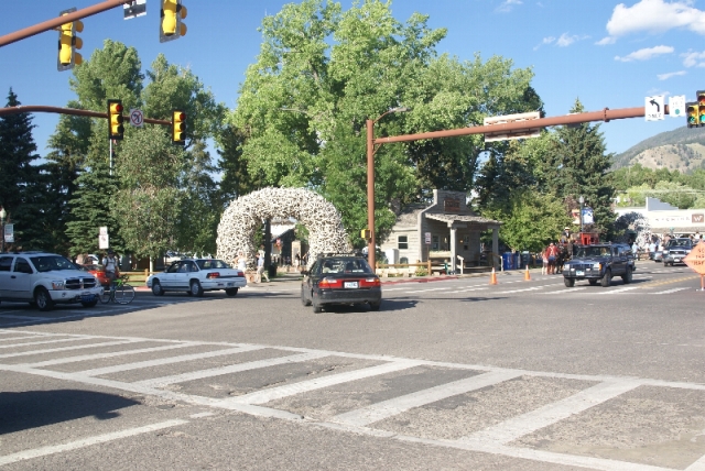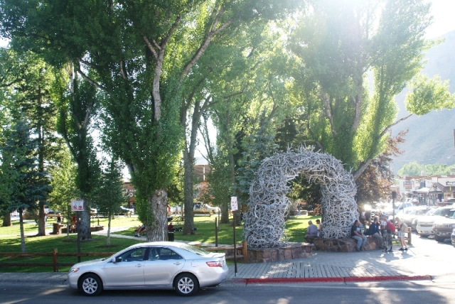 | ジャクソンの中心地。鹿の角を積み上げたゲートが東西南北にあるスクエァ。 | |