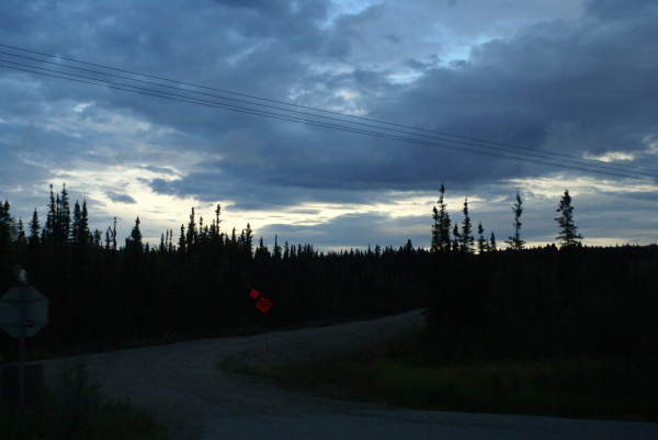 | フェアバンクスを出るときには激しい雨が降っていたのですが、夕焼け空に変わってきました。 | |