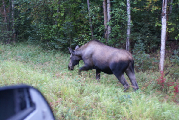 途中ムースに遭遇車中にてパチリと(ムースは結構獰猛な動物で車から降りると危険だと言われました。)