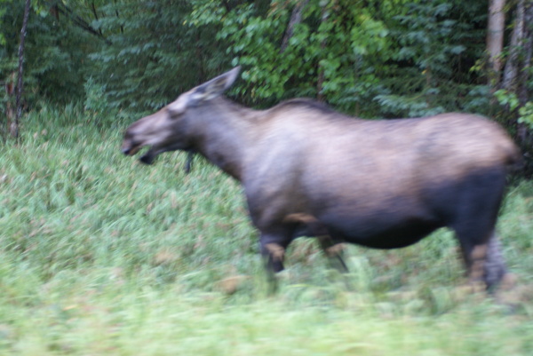 | 運転手が突然車を止めて 叫びました「ムース」がいると! 遠くて暗くて何がなんだかわかりませんね・ |