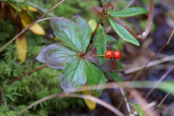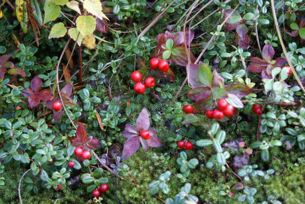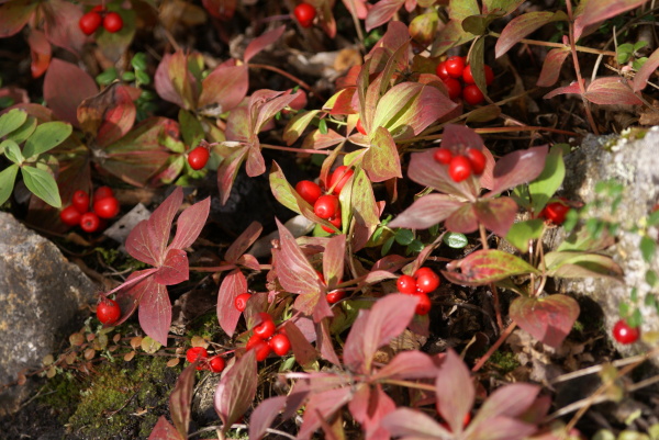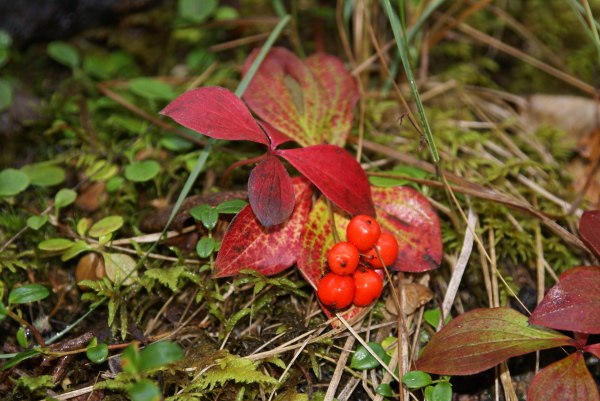 | 南天のような実をつけた小さな高山植物が沢山生えていました。 | |