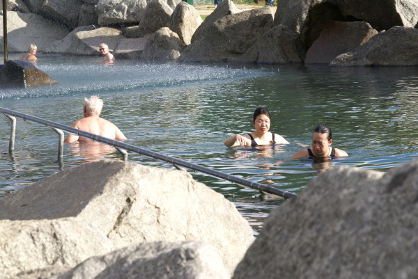 | 翌朝の撮影です。 朝早いため入っている人は少ないようです。 日本の温泉風景だともっと多いですよね。 ちなみにこの温泉は7時からです。 |
