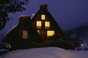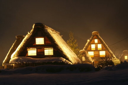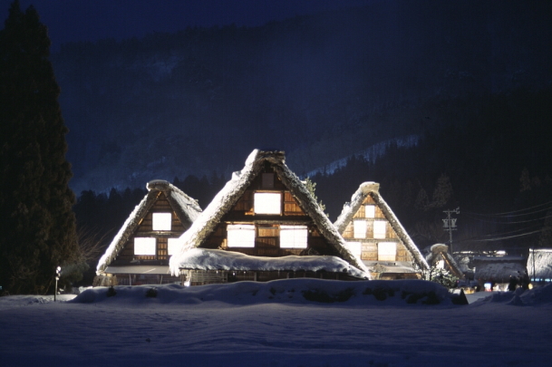 白川郷のライトアップ写真は写真愛好家の 絶好の被写体のようです。