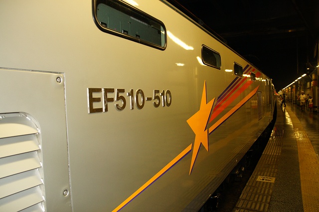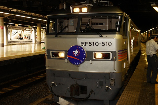 上野駅13番線 16時20分発寝台特急カシオペア 札幌行 牽引機関車はEF510 |