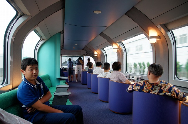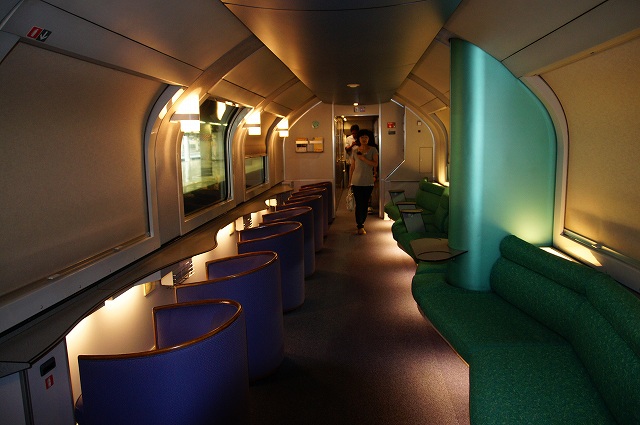 展望車内 札幌進行方向右側は1人掛け 函館からはこの右側からの展望が良い 噴火湾の景色が見えます |