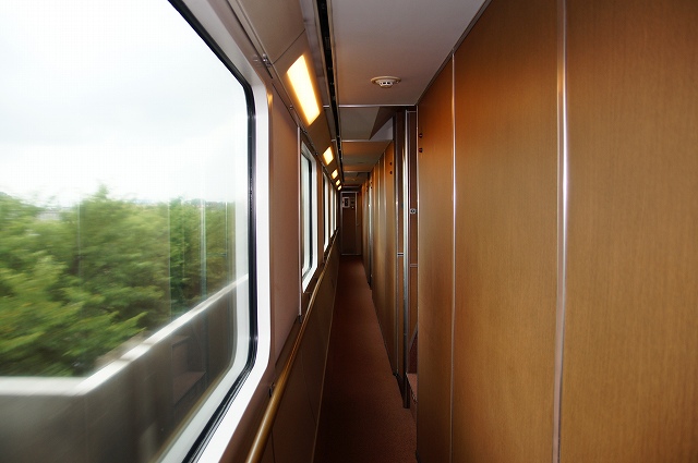 客車の通路 寝台の居室スペースを広くとるために 通路は狭い |