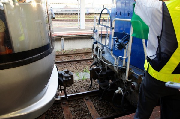 | 12号車に機関車が連結されて、12号車の展望車の正面は眺めが悪くなります | ![]() |