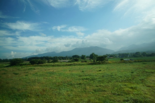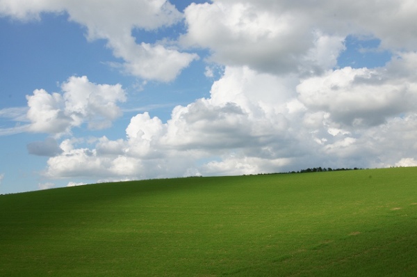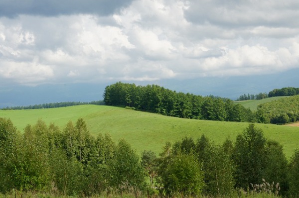 | 丘の緑と青空に浮かぶ白い入道雲のコントラストがきれいです | ![]() |