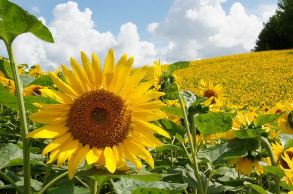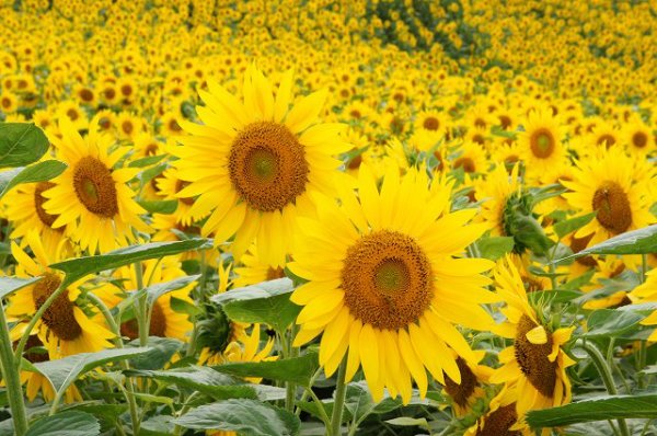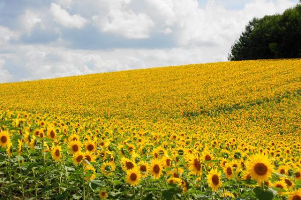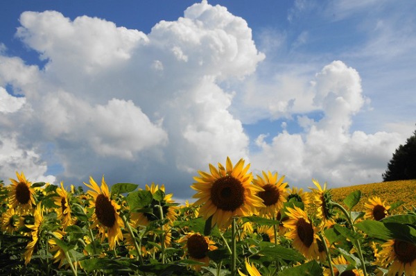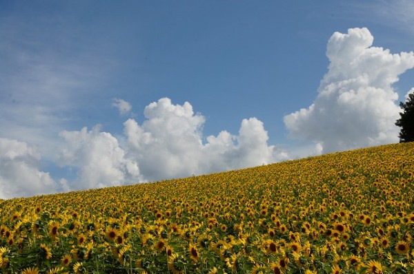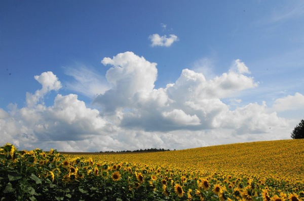 | 美瑛駅から富良野へ向かって車を走らせていくと 突然ひまわりの畑を見つけました |
