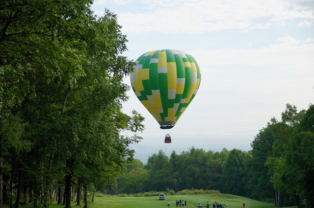 翌朝、ホテルの敷地で気球の体験フライトをやっていました |