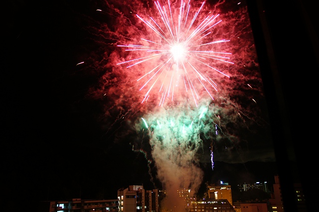 | 八月一杯ホテルでは花火が打ち上げられます | ![]() |