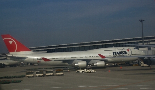 | 2008年7月19日成田発ノースウエスト008便 シアトル行き 15時55分発 写真はボーイングだと思いますが、我々はA300でした。 |