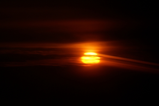 | 太陽が雲の合間からあがりました。 機上にて |