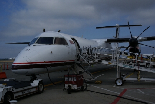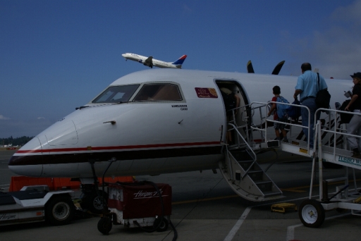 | いよいよシアトルからローカルに乗り換えボーズマンへ。 なんとターボエンジンのプロペラ機でした。 |