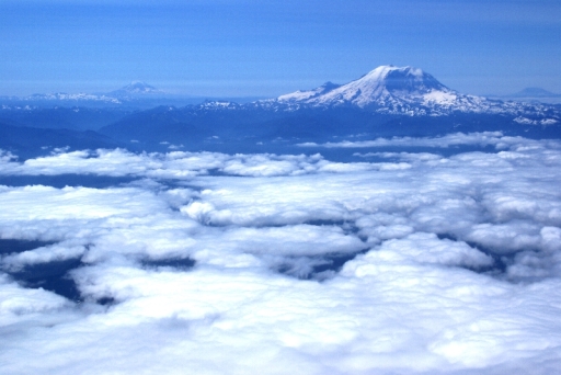 | 空港を出てすぐに、雪をいただいた富士山の形にそっくりな山が、雲上に見ることが出来ました。 |