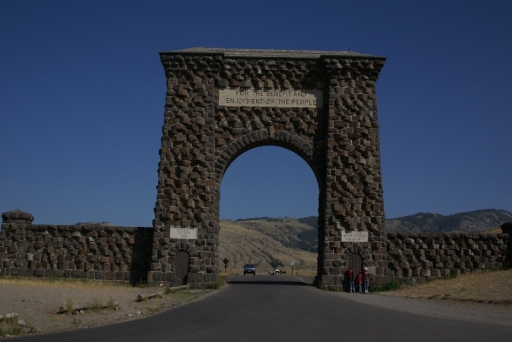 | いきなりイエローストンかとお思いでしょうが、 ボーズマン空港に着いて、レンタカーを借りて、右側通行に慣れぬ間もなく、フリーウェーを必死で運転して着きました。 と言うことで、写真を撮る余裕がありませんでした。 イエローストーン国立公園 公園・北入り口 |