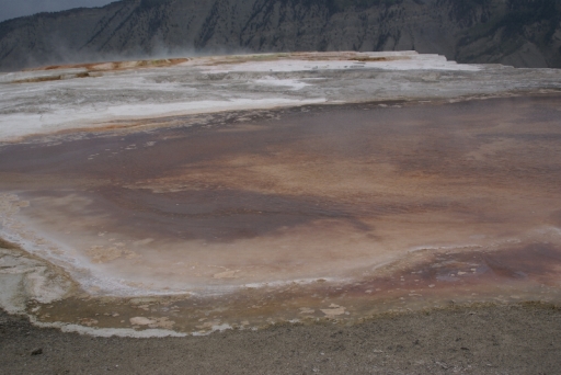 | 赤く変色しているのはバクテリアです。 摂氏70度でも生きていけるそうです。 |