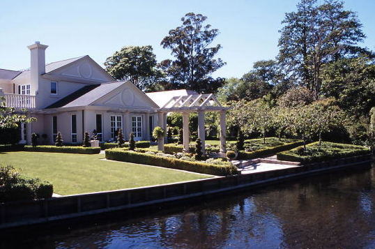 ハーミテージホテルの庭にはヒラリー卿の銅像