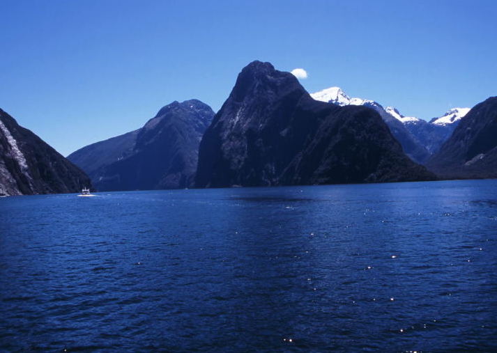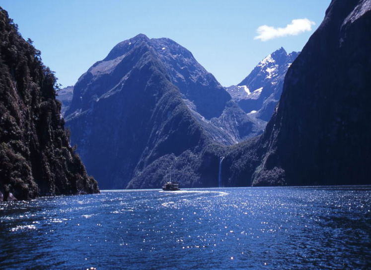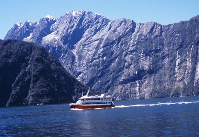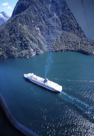 ミルフォードサウンドは氷河によって侵食された断崖が入り組んだ風向明媚な景勝地 今回は海と空からの観光となった。
