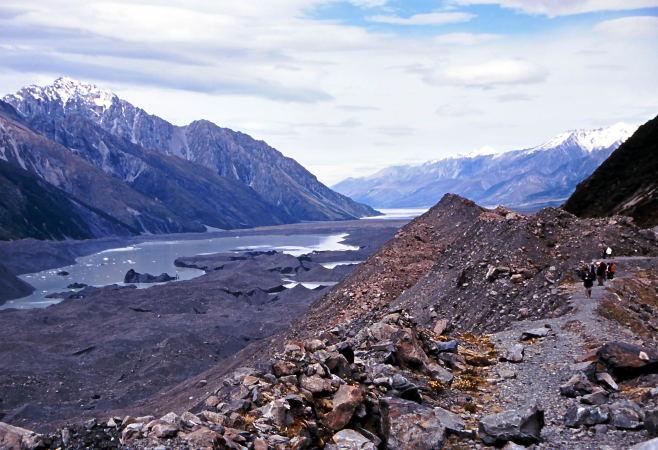 マウントクックビリッジ ハーミテージホテルよりトレッキング開始,