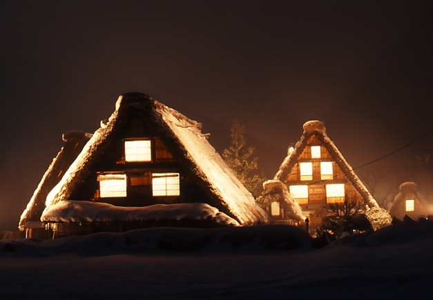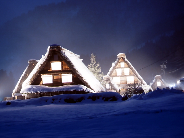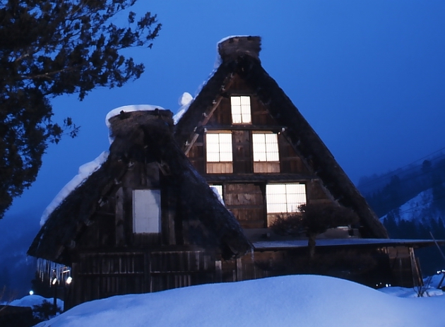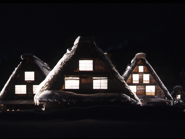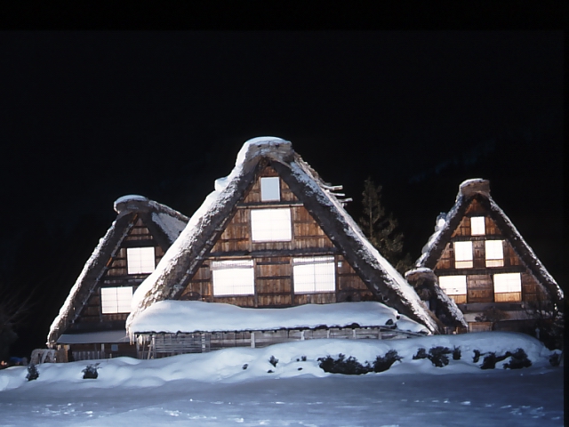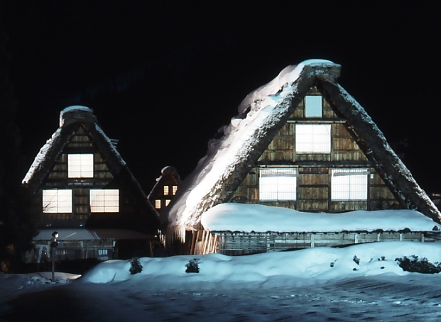 ライトアップされた合掌造り