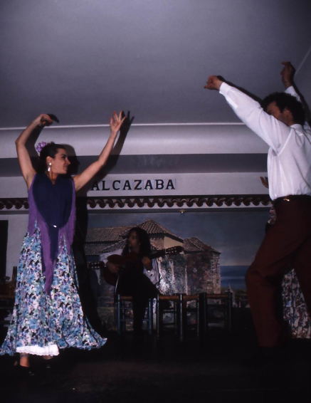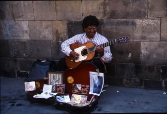 街角ではギターを奏でるフラメンコギター奏者が街の賑わいを盛り上げる。