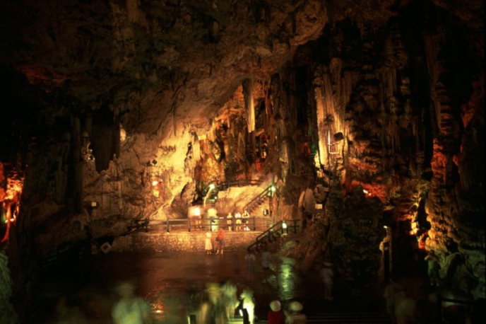 ジブラルタルにアル鍾乳洞 ライトアップが神秘的