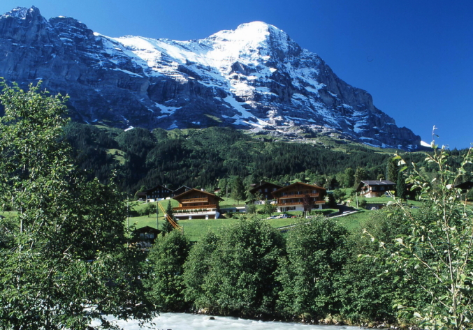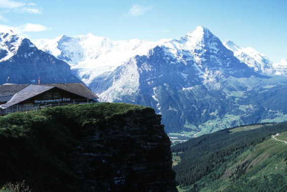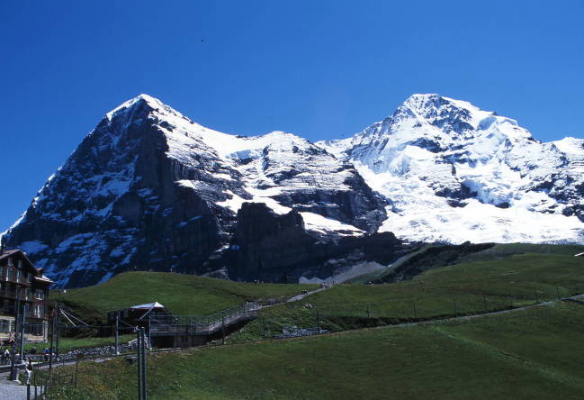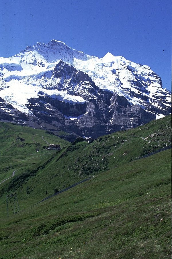 フィルストよりアイガー北壁を望む、アイガーの右後方はユングフラウ