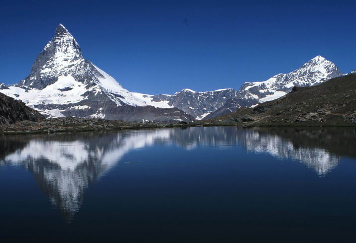 朝焼けのマッターホルンを撮影しようと前日に撮影場所を下見、良いポジションがあった。