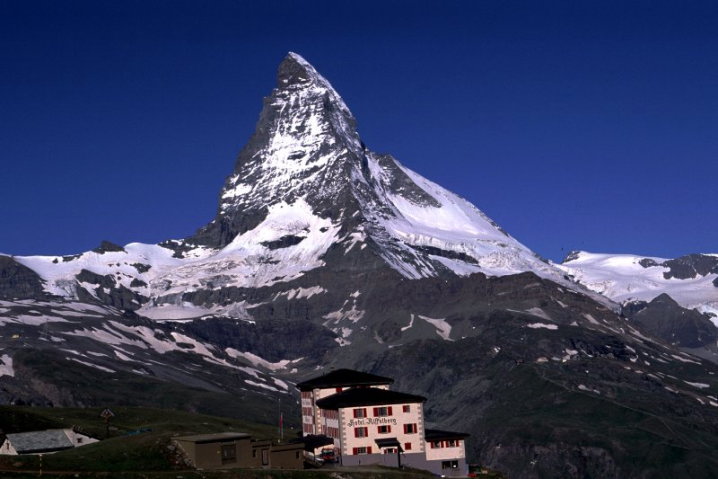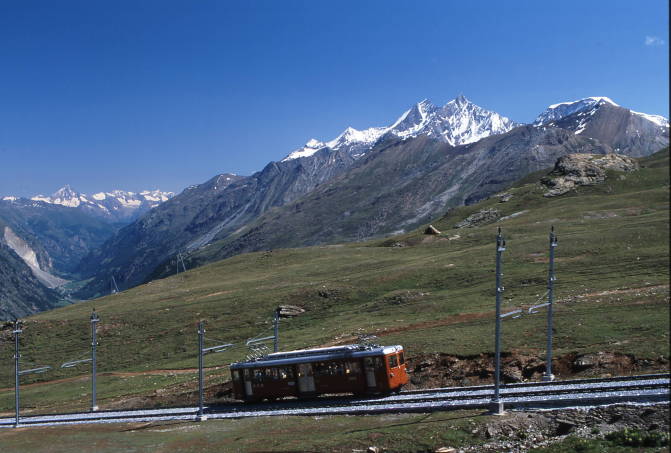 ツェルマットはマッターホルン登山の基地である。街は車が締め出され鉄道でのアクセスとなる。
