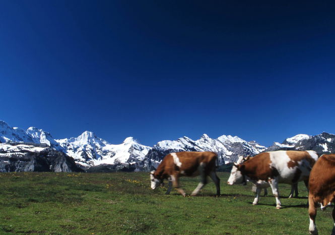 万年雪をかぶったアルプスと高原に代表されるように国土の三分の二は山と森と牧草地帯です。マッターホルン、ユングフラウ、アイガーなどなど美しい峰々を堪能しました。付録でフランスのモンブランもツアーについておりましたので一緒にお楽しみください。
